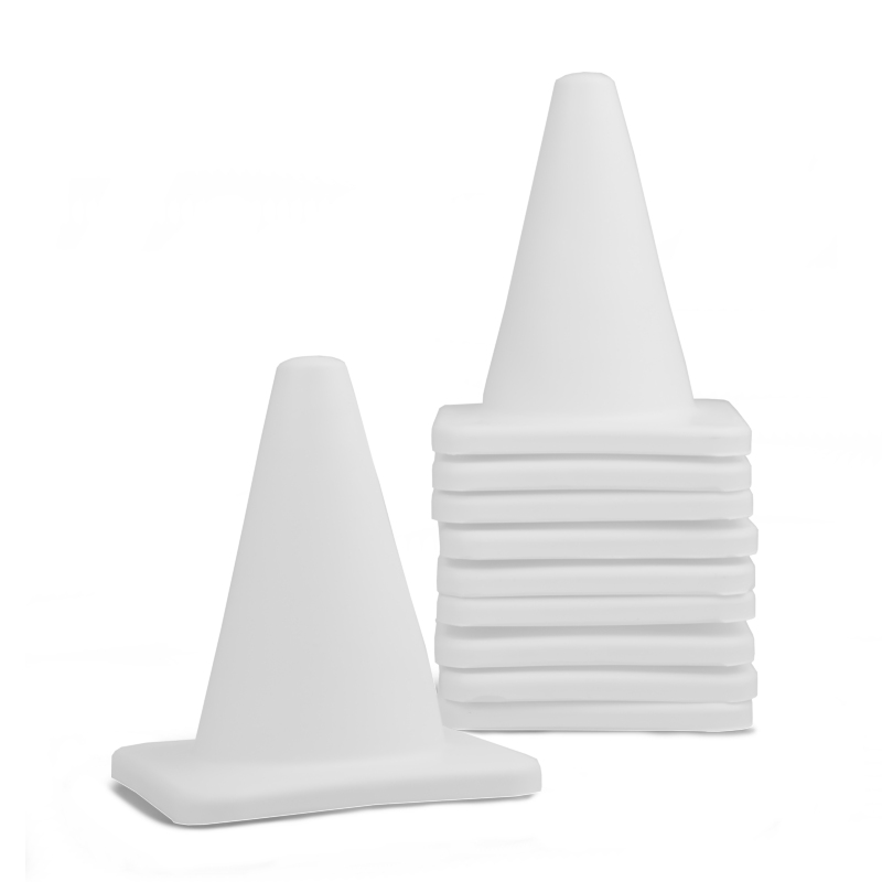 En stabil markeringskon som går att använda både inomhus och utomhus. 10 cm hög. 10 st.