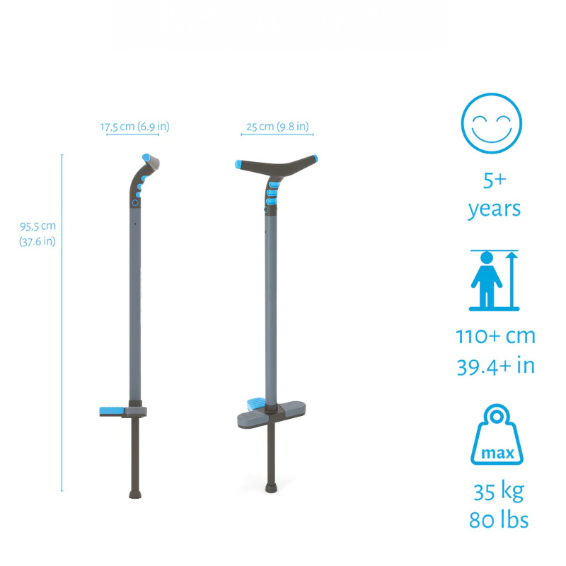 Hoppstylta Fun Kids är en hoppstylta designad för roliga utmaningar. Denna hoppstylta har en centraliserad extra fotpedal och ett ergonomiskt handtag för att prova att hoppas på med en hand eller en fot. Utmana dig själv för lite extra kul! Öva balansen genom att byta från två fötter till en! Och försök sedan släppa en hand också, steg för steg. Det mångsidiga soft-touch handtaget är designat för en eller två händer. Denna hoppstylta är försedd med en stark fjäder inuti röret för att kunna garantera många roliga hopptillfällen.