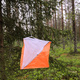 Den vanligaste skärmen. Tillverkad av vit/orange nylon. Strl. 300x300 mm.
