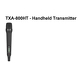 Handmikrofon med inbyggd multisändare, med UHF PLL-teknik. Matchar de portabla förstärkare systemen i TXA-1000 och TXA-800-serien. Kan ställas in på 16 olika frekvenser (mellan 863.1-864.9MHz).Dynamisk mikrofonpatron, kardioidisk karakteristik.